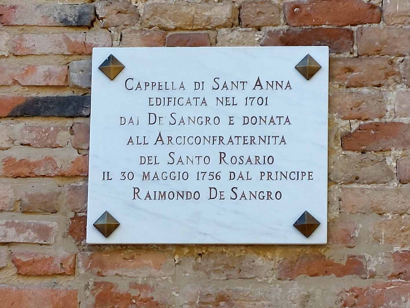 Edificio in muratura in mattoni, a pianta rettangolare, con copertura a doppio spiovente e manto in coppi. La facciata principale si sviluppa su due ordini, presenta un basamento lapideo e al centro un portale ad architrave in pietra con modanature verticali, fregio liscio sovrastante e fastigio orizzontale modanato, sovrastato da stemma nobiliare in cartiglio, preduto da due gradini. Sul secondo registro si apre un grande finestrone ad architrave con cornice in pietra, con modanature verticali. Il cornicione è in aggetto modanato. L'interno si sviluppa ad aula unica con volta a botte, lo spazio è scandito da tre campate a tutto sesto separate da pilastri rettangolari con paraste in marmo serpentino con basi in pietra e semicapitelli corinzi in pietra. Sopra gli archi delle campate vi è una chiave con stemma in cartiglio. Su una delle paraste del lato destro è alloggiato un pulpito ligneo a baldacchino, mentre al di sopra dell'ingresso vi è un coro ligneo. L'altare maggiore e la zona presbiteriale sono sensibilmente rialzate, servite da una doppia scala con ringhiera in ferro battuto. Al di sotto dell'altare, tra le due rampe trova posto la cripta della cappella