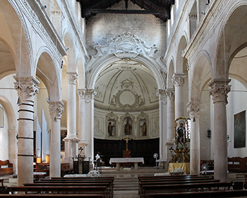 Muratura portante per i muri perimetrali e colonne con capitelli sorreggono la muratura portante della navata centrale
