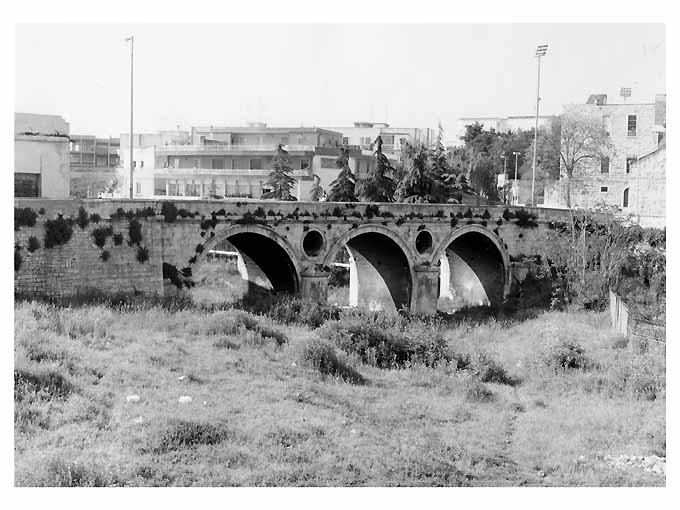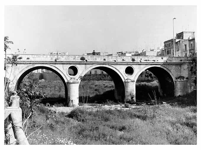 Il ponte poggia su fondazioni collegate da una potente piattaforma basamentale ed è realizzato in pietra calcarea su tre arcate semicircolari, poggianti su poderosi setti muniti di dispositivi frangiacque. Le reni degli archi sono disposte al di sopra dei livelli ordinari di piena e i piedritti sono orientati in modo collineare all'andamento delle acque. La sovrastruttura stradale era completata con selciato e balaustra metallica