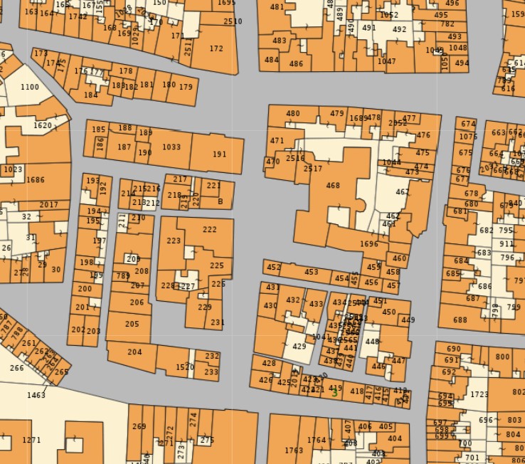 Il nucleo storico si sviluppa intorno al Castello De Falconibus. Originariamente il castello era circondato da un fossato, noto dalle fonti; da documenti catastali (il più antico dei quali risale agli inizi del XIX secolo) risulta che in età moderna tale apparato difensivo, progressivamente interrato, era stato suddiviso in diversi lotti adibiti ad uso ortivo. In conseguenza di tale parcellizzazione del fossato le abitazioni che tali orti sfruttavano si sono addossate al castello, con il risultato tuttora visibile che parte del complesso è stato praticamente “inglobato” dai giardini annessi agli edifici residenziali moderni