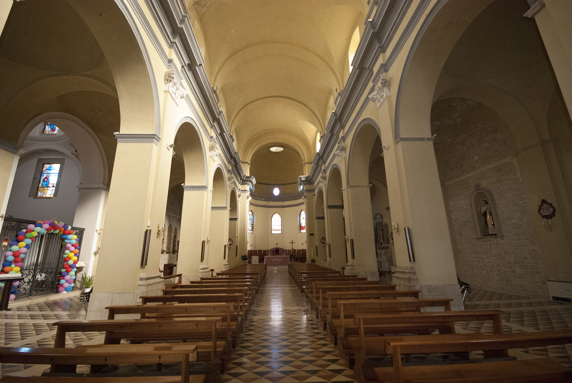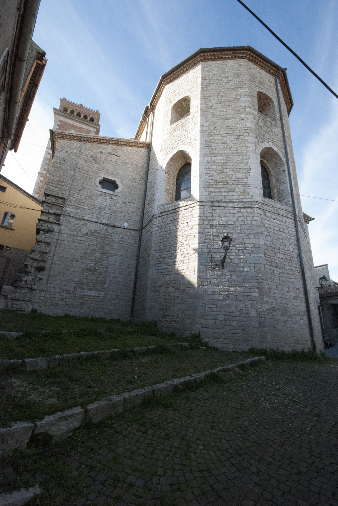 Edificio a pianta rettangolare a tre navate con abside centrale poligonale, in muratura di pietra squadrata a ricorsi regolari. La navata centrale è costruita con doppio ordine di archi a tutto sesto, le due navate laterali sono asimmetriche tra loro e si sviluppano in altezza fino al primo ordine di archi della navata centrale. Gli orizzontamenti sono di due tipologie: volte a crociera e volte a botte, il tetto è a doppia falda