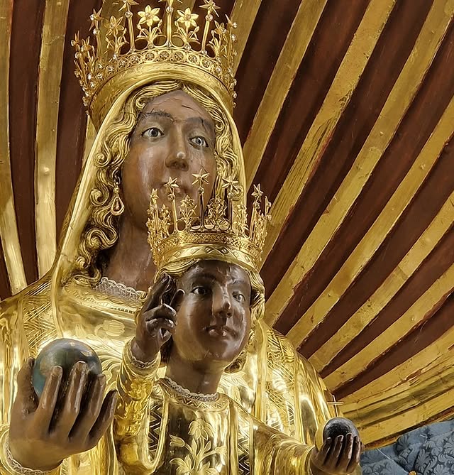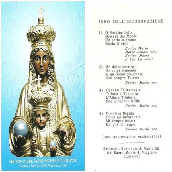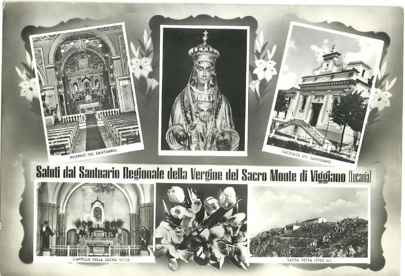 - NOTIZIE STORICO CRITICHE Le origini della chiesa di Santa Maria del Monte sono piuttosto incerte. L'ipotesi più accreditata la fa risalire all'XI secolo e ne collega la nascita alla caduta di Grumentum, attaccata a più riprese dai saraceni sin dal IX secolo e definitivamente rasa al suolo intorno al 1050. Il simulacro della Vergine, infatti, sarebbe stato custodito inizialmente proprio nella cattedrale di Grumentum. Di qui sarebbe stato trasferito e nascosto sulla vetta del Monte di Viggiano per evitare che venisse distrutto dagli invasori saraceni. A questo punto entra in campo la leggenda, la quale narra come alcuni pastori della valle sottostante, attirati da strani fenomeni luminosi osservati sulla sommità del monte, vi rinvennero, miracolosamente intatto, il sacro simulacro, subito trasportato a Viggiano e collocato nella cappella di Santa Maria fuori le mura, che da allora fu detta del Deposito e che successivamente diventò la sede urbana del Santuario. La devozione e l'affetto dei fedeli non hanno costituito, però, l'unica nota di privilegio del Santuario di Viggiano. Accanto ad essi, infatti, hanno fatto eco non pochi riconoscimenti ufficiali da parte delle autorità ecclesiastiche, tanto dei vescovi di Marsico e Potenza, quanto della Sede Apostolica. È certo che sin dal Medioevo, il Monte di Viggiano e il Monte di Novi Velia, anch'esso di origine basiliana, furono i due poli della religiosità mariana dei lucani. Occorre attendere, però, gli inizi del XVI secolo perché i pontefici Giulio II e Paolo V diano personalità giuridica al Santuario, affidandolo ad un'amministrazione laicale. Sotto il pontificato di Clemente XII, e precisamente il 12 giugno dell'anno 1740, il Santuario viene incorporato dal Capitolo Liberiano alla Basilica di Santa Maria Maggiore in Roma, con facoltà di usufruire degli stessi diritti e privilegi spirituali. Il 22 giugno 1835 la Sacra Congregazione dei Riti proclama Santa Maria del Monte “Prima e principale patrona di Viggiano”. Nel 1859, ceduta al vescovo dalla Commissione di Beneficenza e dichiarata chiesa parrocchiale, la chiesa di Santa Maria del Monte diventa parrocchia-santuario, e il parroco gestisce l’amministrazione dei beni e la cura della chiesa e della statua. Con atto ufficiale del 25 gennaio 1859, il Direttore del Real Ministero dell’Interno dispone che si cedessero all’amministrazione parrocchiale le offerte fatte dai fedeli alla chiesa di Santa Maria del Monte, e ordina al sindaco che non si ingerisse più con la Commissione di Beneficenza nell’amministrazione delle offerte. Il 4 settembre 1892 mons. Tiberio Durante, vescovo di Marsico e Potenza, su decreto di Papa Leone XIII e del Capitolo di San Pietro, otteneva e realizzava l'incoronazione della venerata immagine, davanti ad una folla impressionante, giunta a Viggiano da ogni angolo della regione quasi interamente a piedi. All'indomani dei Patti Lateranensi del 1929, mons. Ignazio Monterisi ottenne finalmente alla diocesi di Potenza la gestione del Santuario, caduta paradossalmente già nel secolo precedente nelle mani della Massoneria, presente a Viggiano con una loggia tra le più importanti del Meridione. A conclusione del Concilio Vaticano II, l’11 dicembre dell'anno 1965, con la Bolla “Lucanae genti” Papa Paolo VI elevava il Santuario di Viggiano alla dignità di Basilica Minore, proclamando la Madonna del Sacro Monte Patrona e Regina delle genti lucane (https://www.beweb.chiesacattolica.it/edificidiculto/edificio/20140/Basilica+di+Santa+Maria+del+Monte+%7C+Viggiano+%28PZ%29)