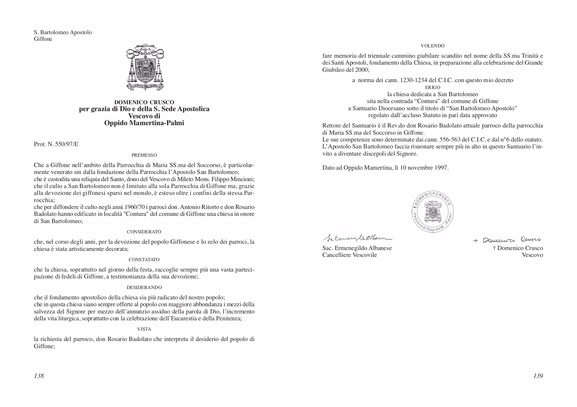 - INDIRIZZO Via San Bartolemeo, Giffone (RC)