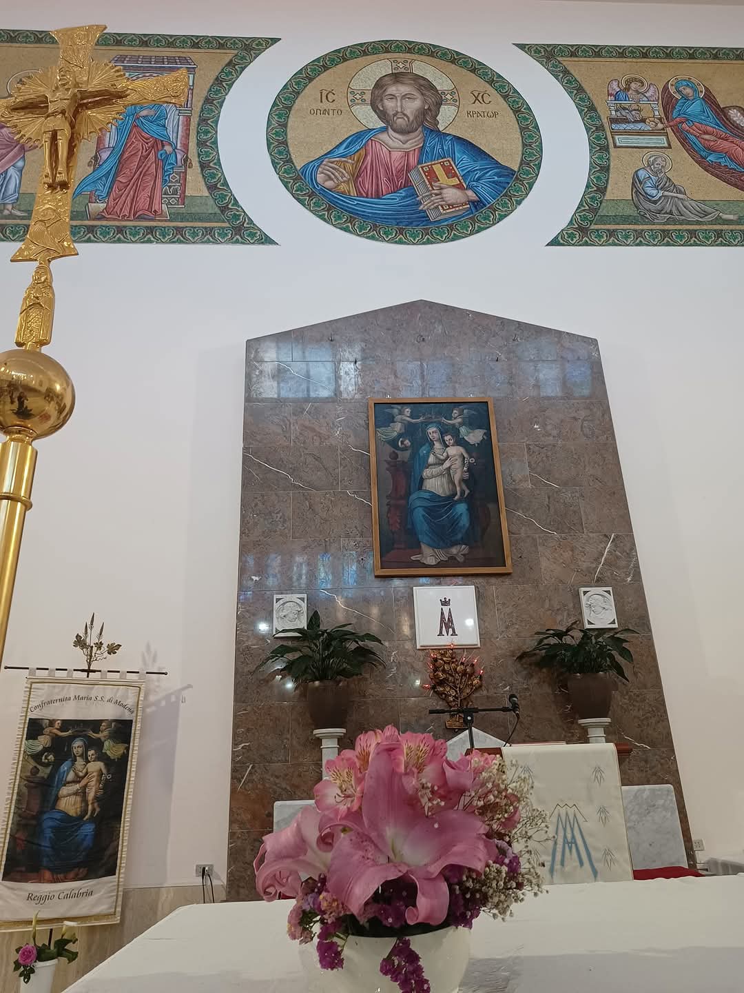 - NOTIZIE STORICO CRITICHE La prima notizia sulla chiesa di Modena risale al 30 luglio 1403, quando per disposizione pontificia si provvedeva alla nomina di un nuovo rettore dopo la morte del sacerdote Nicola, addetto al servizio religioso del luogo sacro. Risale al secolo XVI la documentazione storica sulla presenza dei Domenicani che abitavano l'attiguo convento, ma la devozione alla Madonna è probabilmente anteriore alla loro presenza. Nel 1571 i Domenicani si trasferirono a Reggio, chiamati dall'arcivescovo Gaspare del Fosso. Papa Clemente VII il 27 novembre 1528 concesse l'indulgenza plenaria ai fedeli che contribuivano ai restauri della chiesa e la visitavano nei giorni successivi alla prima domenica di maggio e alla seconda domenica d'agosto e nella festa di Tutti i Santi. Il basamento di un'acquasantiera con emblemi caratteristici dell'ordine di San Domenico e la data MDXC, testimonia la presenza dei Padri Domenicani fino agli ultimi anni del secolo XVI. Probabilmente dopo i Padri Domenicani i Romiti si occuparono del Santuario. L'arcivescovo di Reggio, dal 1593 al 1638, mons. Annibale D'Afflitto considerò il colle di Modena come un nuovo Carmelo, dove si recò più volte in pellegrinaggio a piedi scalzi nei periodi di siccità e ottenne le piogge necessarie per i raccolti (Cfr. G. Nucera, "Don Lillo Altomonte. Profeta degli ultimi e Padre dei poveri", Reggio Calabria, Laruffa Editore, 2010, pp. 36-37). L’antico luogo di culto dedicato alla Madonna di Modena e l'attiguo ospizio andarono distrutti durante il terremoto del, 1908. Il marchese Gagliardi di Monteleone offrì il terreno per la costruzione del nuovo edificio che sostituì una chiesa baracca aperta al culto nel 1910. Nel 1978 l'edificio, a causa di diversi danni sismici e alluvionali, fu demolito e fu ricostruito il nuovo luogo di culto su progetto dell'architetto Santella e fu consacrato il 31 ottobre 1981 dall'arcivescovo di Reggio Calabria mons. Aurelio Sorrentino