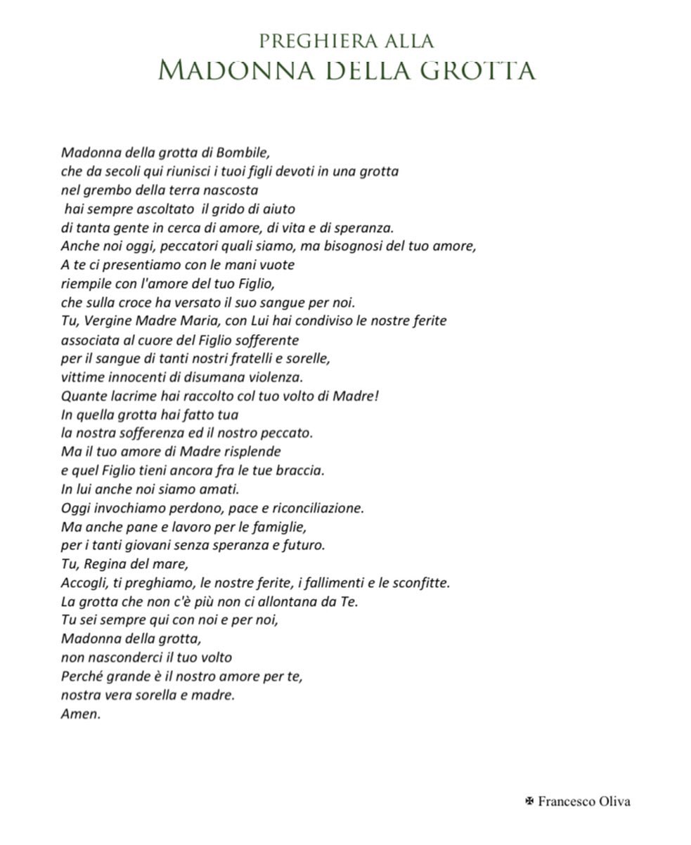 - NOTIZIE STORICO CRITICHE Alla base della Rupe di Bombile all’inizio del XVI secolo venne realizzata e successivamente ampliata la chiesa del Santuario della Madonna della Grotta. Successivamente vennero realizzate, nel corso dei secoli, parte a destra e parte a sinistra della Chiesa stessa ulteriori grotte a servizio del Santuario, per ospitare gli eremiti ed i Pellegrini che, in numero variabile, nelle diverse epoche vi trovarono rifugio. Nel 1629 si verificò un evento traumatico: alcune delle grotte crollarono seppellendovi i frati che gestivano il luogo di culto. Inizialmente la chiesa misurava una lunghezza di circa 13 m ed una larghezza di poco più di 6 m. Successivamente, a metà del XVIII secolo, la chiesa già si configurava con una pianta a croce (1752 - consacrazione da parte del Vescovo Cesare Rossi). A metà del XIX secolo (1891 - voluto dal parroco Morabito) si sviluppa l’ampliamento definitivo. Il giorno 28 maggio 2004, verso mezzogiorno, una enorme porzione della Rupe crollò coinvolgendo direttamente la quasi totalità del Santuario; in quel momento fortunatamente nessun visitatore si trovava nella zona sottesa dal franamento. A distanza di due settimane (12 giugno 2004), un successivo franamento delle porzioni di versante ormai instabile distruggeva completamente il sito dell’originale Santuario. La volontà di verificare la reale fattibilità di una operazione di recupero della statua, spinse l’allora Vescovo di Locri mons. GianCarlo Bregantini a richiedere alle Autorità competenti le necessarie risorse per una prima fase di studio. Per l’interessamento del Sindaco di Ardore Giuseppe Maria Grenci e del geologo Vincenzo Pizzonia, al tempo dirigente del Settore Geologico Regionale, venne contattato il dott. Claudio Valle di Trento, contitolare di Geologia Applicata St. Ass., specializzato nell’analisi di frane in roccia, che, su invito della Diocesi e del Comune di Ardore, scese sui luoghi del disastro nell’agosto del 2004 per una prima analisi della situazione. Dopo i primi sopralluoghi emergeva l’idea che solo apparentemente il franamento della Rupe doveva aver coinvolto l’intero Santuario in quanto l’attento esame dei luoghi, in particolare della forma della nicchia di distacco, confrontando lo stato del momento con le antiche mappe che ripercorrevano le più recenti fasi costruttive, si intuiva che la zona dell’abside del Santuario, che ospitava la statua della Madonna della Grotta, doveva essere stata solamente lambita dalla frattura più profonda. Gli scavi al piede della parete procedettero senza problemi sotto il costante controllo delle condizioni di staticità della Rupe fino a quando venne alla luce una piccola cavità, poi allargata, che consentì di osservare l’interno del Santuario e di constatare direttamente le buone condizioni della sacra effigie. Ad un primo esame la Statua risultava leggermente danneggiata e ci si preoccupò per confezionare un contenitore all’altezza della situazione. Contestualmente fu valutata l’impossibilità di trasportare la statua, pur alloggiata nel contenitore, mediante l’escavatore lungo la rampa di accesso al cantiere in quanto la pendenza della pista unita alla irregolarità del piano viabile rendevano eccessivamente a rischio l’operazione. Fu così che si pensò all’elitrasporto e conseguentemente venne progettata e realizzata una cassa con orditura metallica e rivestita in legno. Il giorno dopo giunse in cantiere la Sovrintendenza alle Belle Arti che esaminò la Statua rilevando e registrando puntualmente i danni riportati. Questi si limitavano fortunatamente a scheggiature di alcune parti che non avrebbero costituito un problema per le operazioni di restauro. In collaborazione con i Tecnici della Sovrintendenza la Statua venne imballata e posta all’interno della cassa, pronta così per il trasporto. In collaborazione con i Tecnici della Sovrintendenza la Statua venne imballata e posta all’interno della cassa, pronta così per il trasporto. La cassa venne pertanto trasportata sul piazzale antistante l’ingresso e trasportata con l’elicottero alla sommità della Rupe direttamente su un mezzo che la trasportò a sua volta fin dinanzi alla scalinata della Chiesa di Bombile. La Statua della Madonna, una volta liberata dalle protezioni e adeguatamente ripulita fu subito esposta per l’indomani mattina al culto dei fedeli. Si concluse così nel migliore dei modi un’impresa, inizialmente tutt’altro che scontata nei risultati, nata nel 2004 e conclusasi nel 2007, resa possibile grazie alla fiducia riposta dalla Diocesi nonché dall’Amministrazione nei Tecnici che l’avevano concepita e diretta e soprattutto nelle Imprese che la resero possibile (E. D'Agostino, La Grotta: dal Convento al Santuario in Stauròs Rivista Storico-Artistica della Diocesi di Locri-Gerace, a. II - n. 1 - gennaio-giugno 2014, pp. 32,33, 44-46, 48)