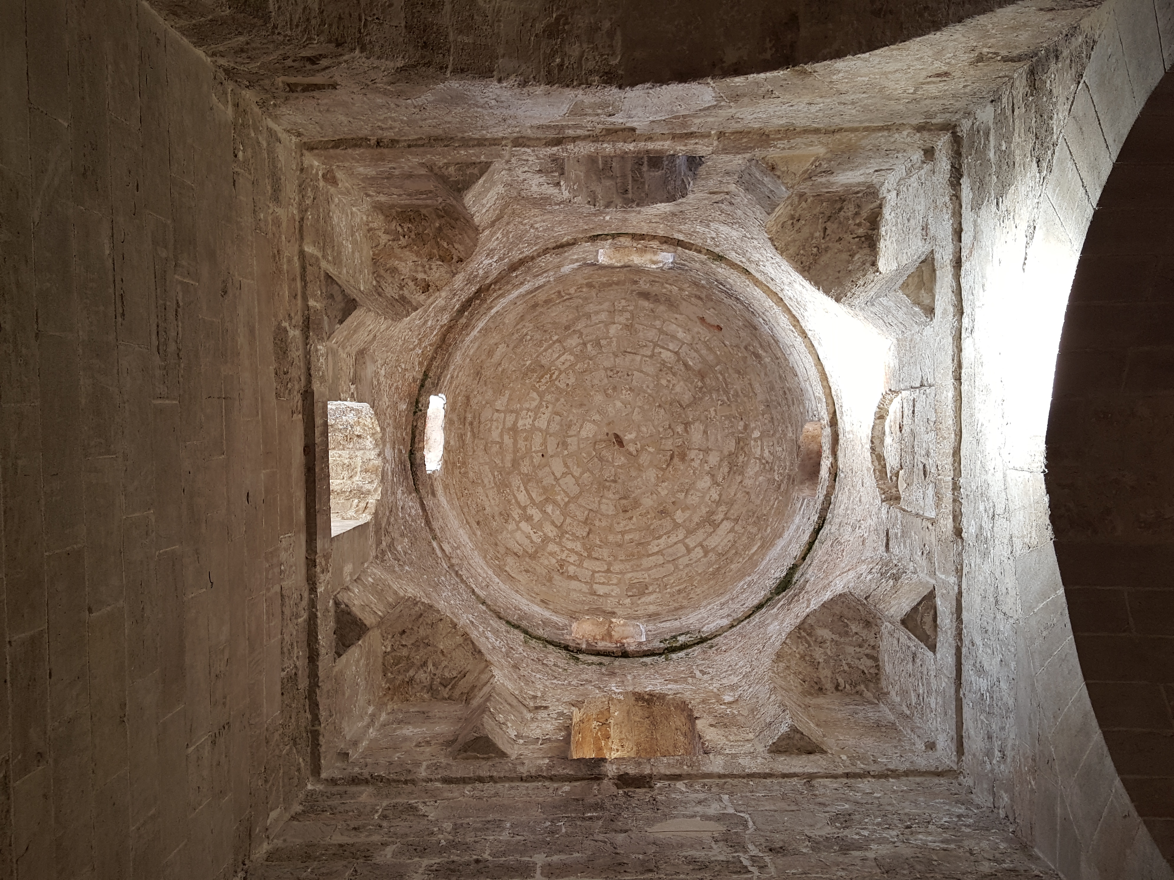 Muratura portante con copertura con cupole di cui due più grandi in corrispondenza della navata unica e tre più piccole, uguali tra loro di cui quella in corrispondenza dell'abside alla stessa altezza sommitale delle altre due, quella in corrispondenza del diaconico posta alla stessa imposta delle due più grandi e l'ultima più alta a copertura del campanile in corrispondenza della sottostante protesi coperta da volta a crociera