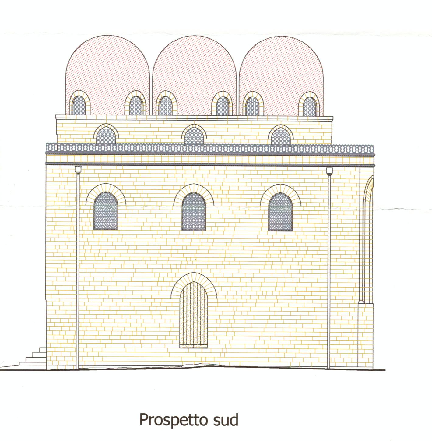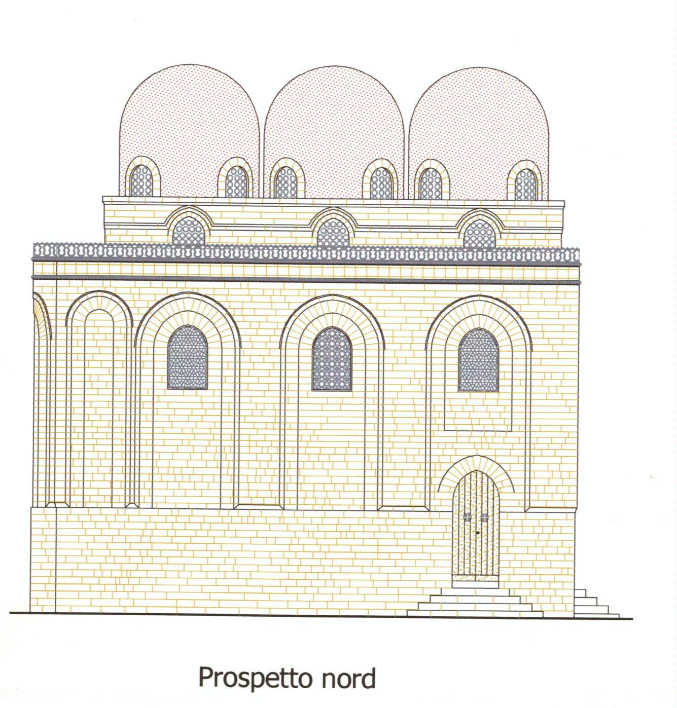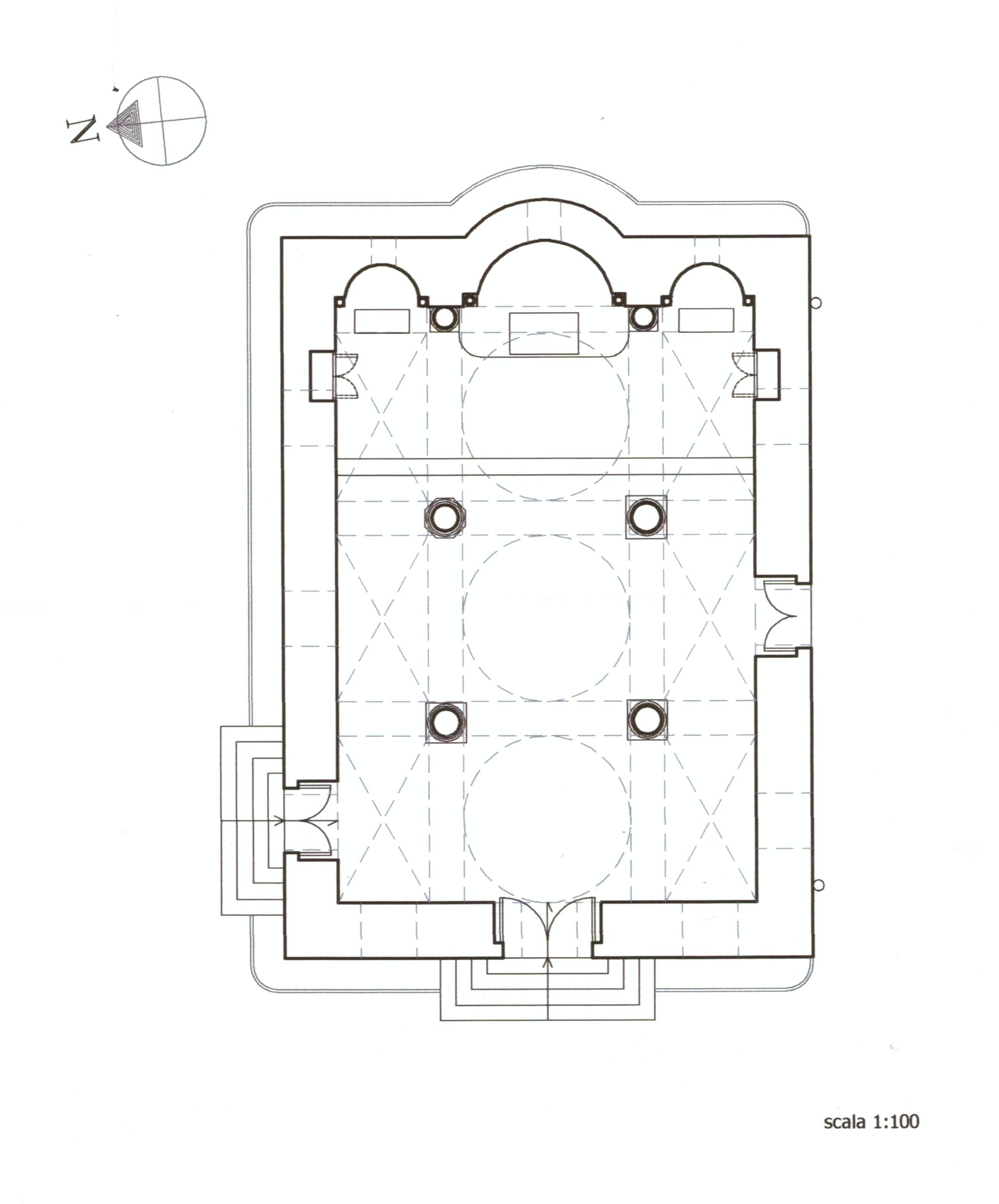 Edificio di forma rettangolare in muratura portante in pietra squadrata di calcarenite con abside centrale sporgente e absidi laterali ricavate nello spessore del muro; copertura piana con tre cupole emisferiche su basso tamburo nella navata centrale, volte a crociera nelle navate laterali