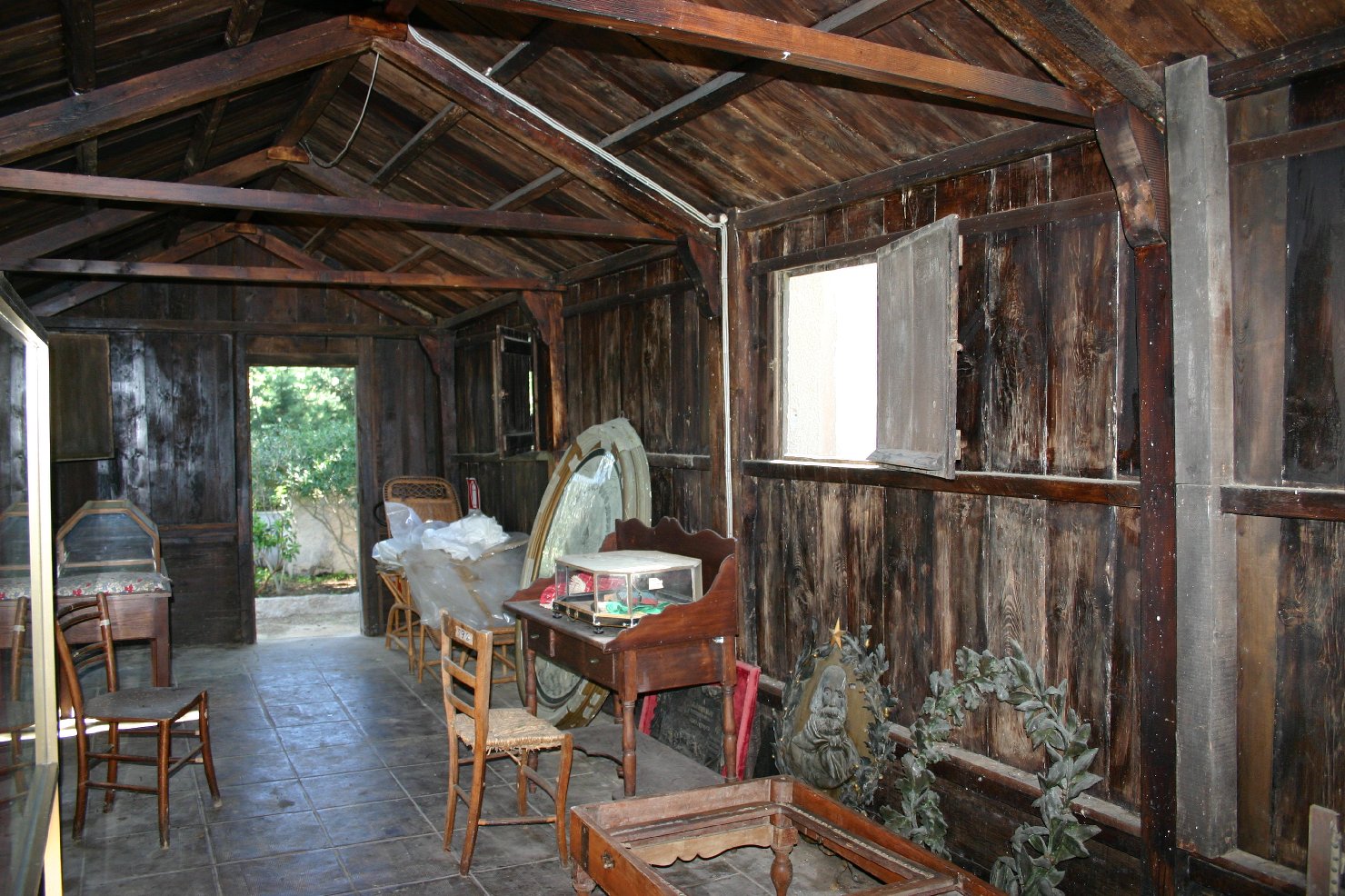 Edificio di forma rettangolare posto su un basamento in pietra intonacata; montanti in legno; superfici di tamponamento in tavolato; tetto a capanna con struttura lignea e capriate semplici; manto di copertura in lamiera ondulata