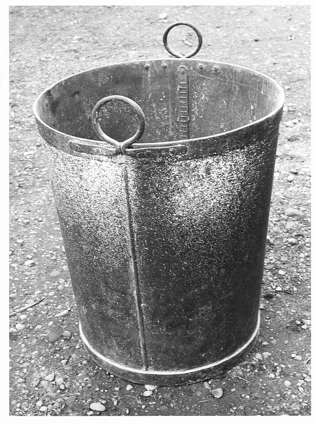 Secchio a forma troncoconica con manici a forma circolare; all'interno sono fissate due strisce di ottone numerate