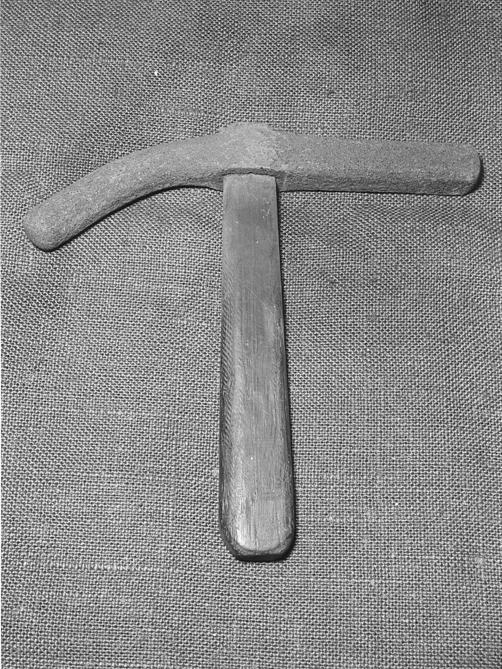 La penna ha sezione rotonda di cm 2.3 ed estremità bombata, ed è ricurva verso il basso; la bocca, rettilinea, ha sezione quadrata di cm 2.3 di lato con spigoli smussati ed estremità bombata