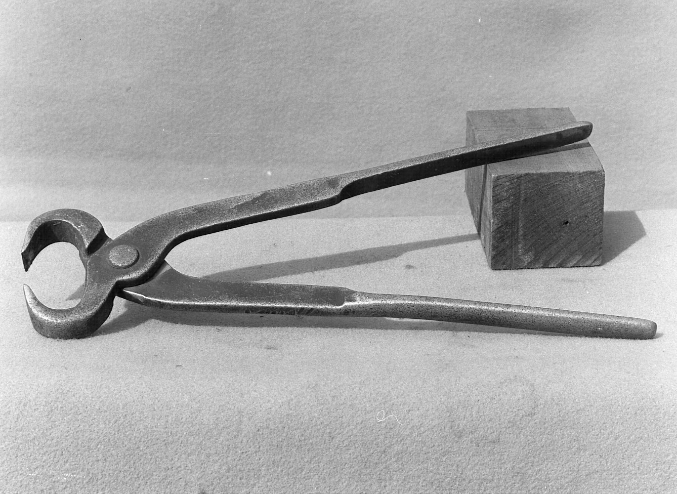 Tenaglia taglia chiodi: le branche simmetriche e semicircolari sono taglienti (taglio di cm. 1.5); i manici, appiattiti nella parte prossimale sono cilindrici in quella distale