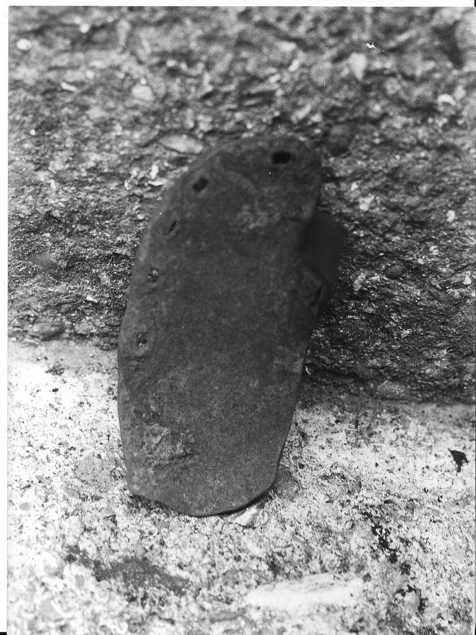 Si tratta di una lastretta in ferro battuto a forma arcuata che presenta una serie di cinque fori praticati sul bordo esterno. Un rostro di ferro di circa quattro cenitmetri è all'apice, disposto perpendicolarmente alla lastra