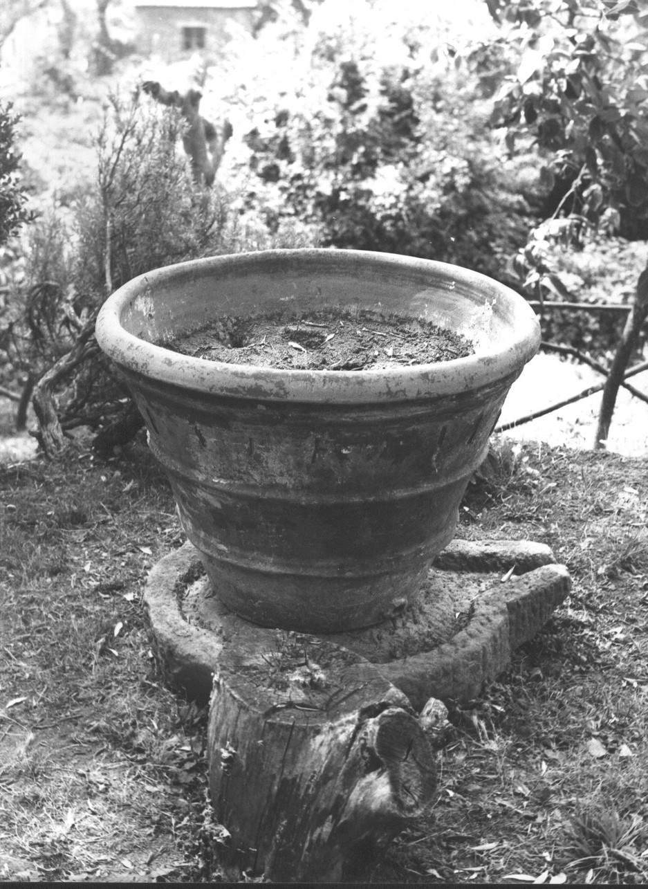 Si tratta di un vaso un terracotta a forma troncoconica. La superficie esterna del vaso presenta modanature decorative.In prossimità della base il recipiente ha un foro di scarico