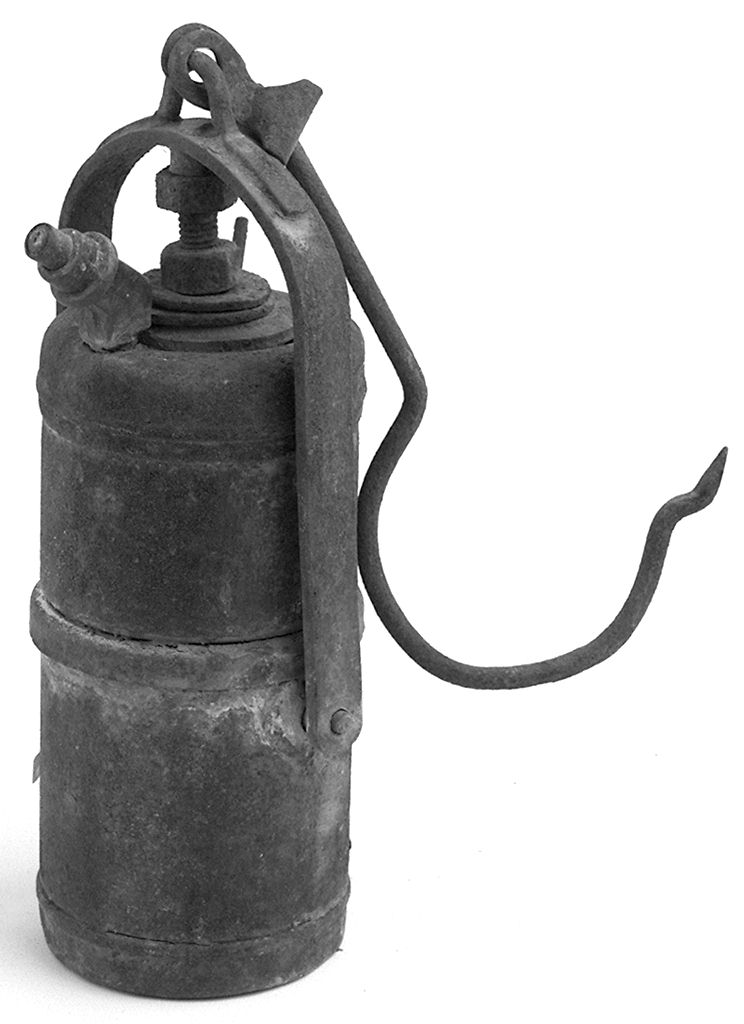 - FUNZIONE E MODALITÀ D'USO illuminare o segnalaresvitato il coperchio viene riempita di acetilene e acqua quindi richiusa viene accesa e portata a mano per il gancio o appesa