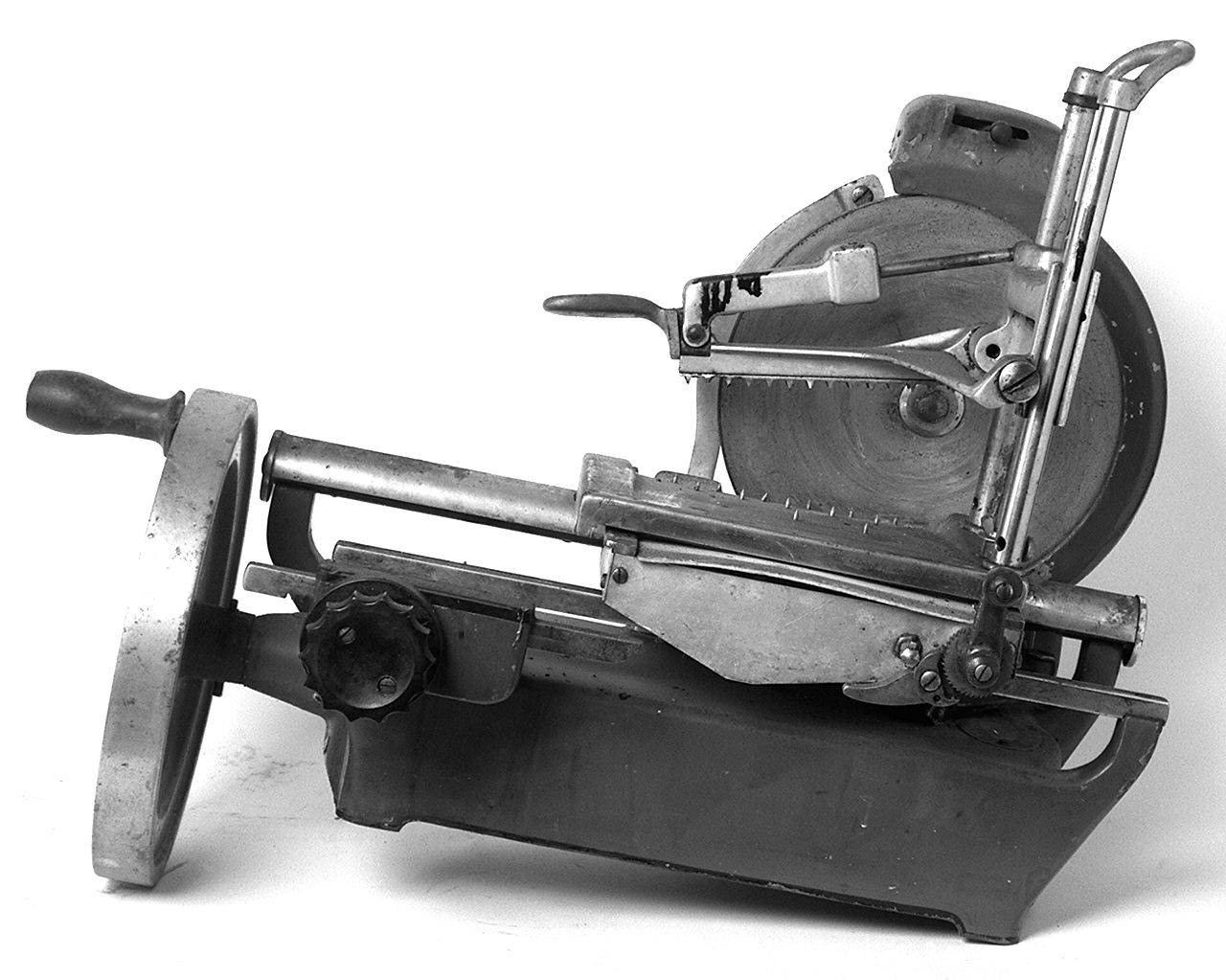 - FUNZIONE E MODALITÀ D'USO tagliare in fette sottili gli insaccativi veniva messo il salume da affettare che veniva fermato con la leva dentata e si girava la manovella che faceva ruotare la lama