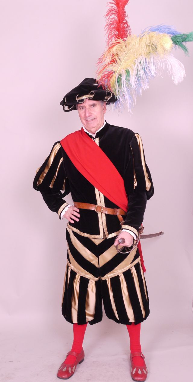 Il costume rappresenta uno degli Ufficiali delle Compagnie di Fanterie appartenente al gruppo, appunto, degli Ufficiali del Corteo Storico Fiorentino. E' composto da un giubbone di velluto nero con profilature in passamaneria dorata, le ampie maniche presentano tiracchie sempre di velluto nero soppannate da raso dorato, le brache sono di velluto nero rifinito in passamaneria dorata tiracchie e soppannate di raso dorato. Le calze sono rosse come le scarpe a zampa d'orso. La vita è stretta da una cintura di cuoio con guaina per custodire la spada con fornimento di varie fogge portata sul fianco sinistro. Sul giubbone viene portata una fascia rossa a tracolla, segno di comando. La berretta è in velluto nero e decorata da piume colorate