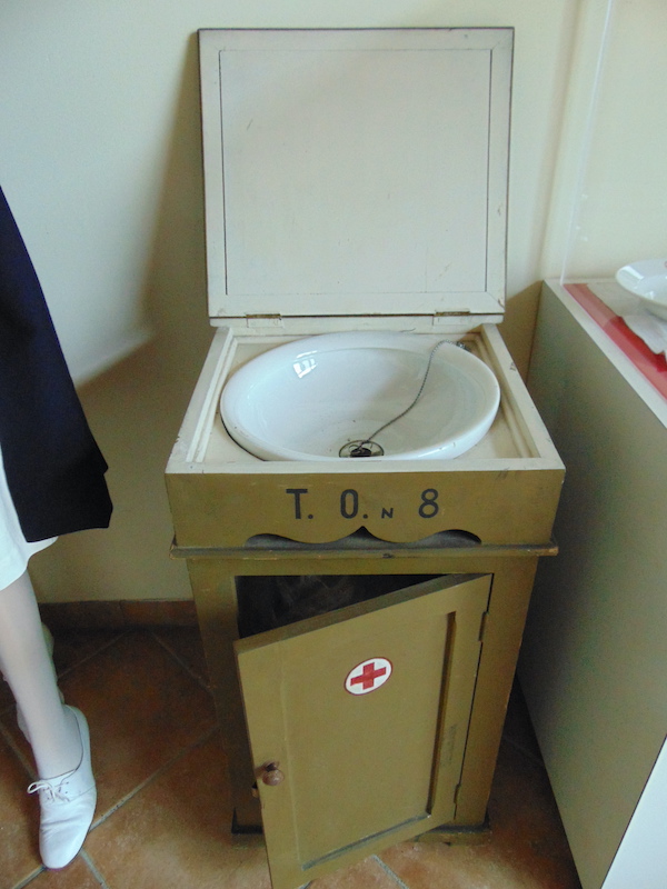 - FUNZIONE E MODALITÀ D'USO Igiene dei medici e infermieri militariIl lavabo faceva parte dell'arredo del Treno Ospedale n.8, era utilizzato per l'igiene del personale della Croce Rossa in fase di soccorso e cura dei feriti. L'oggetto è mobile e facilmente trasportabile anche all'esterno del treno