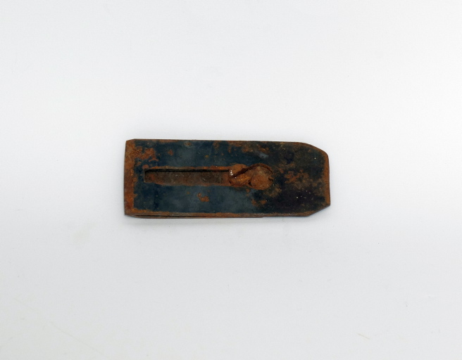 L’estremità inferiore presenta una lama a filo, mentre centralmente porta un'asola per il fissaggio al controferro