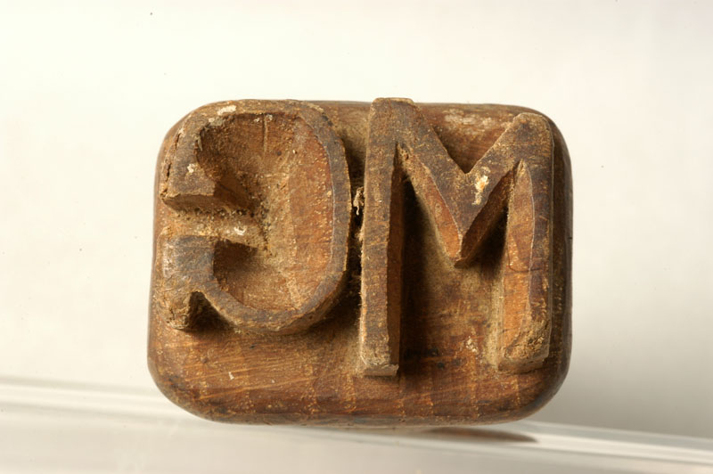 Oggetto composto da una base a forma rettangolare sotto cui vi sono intagliate delle lettere a rilievo