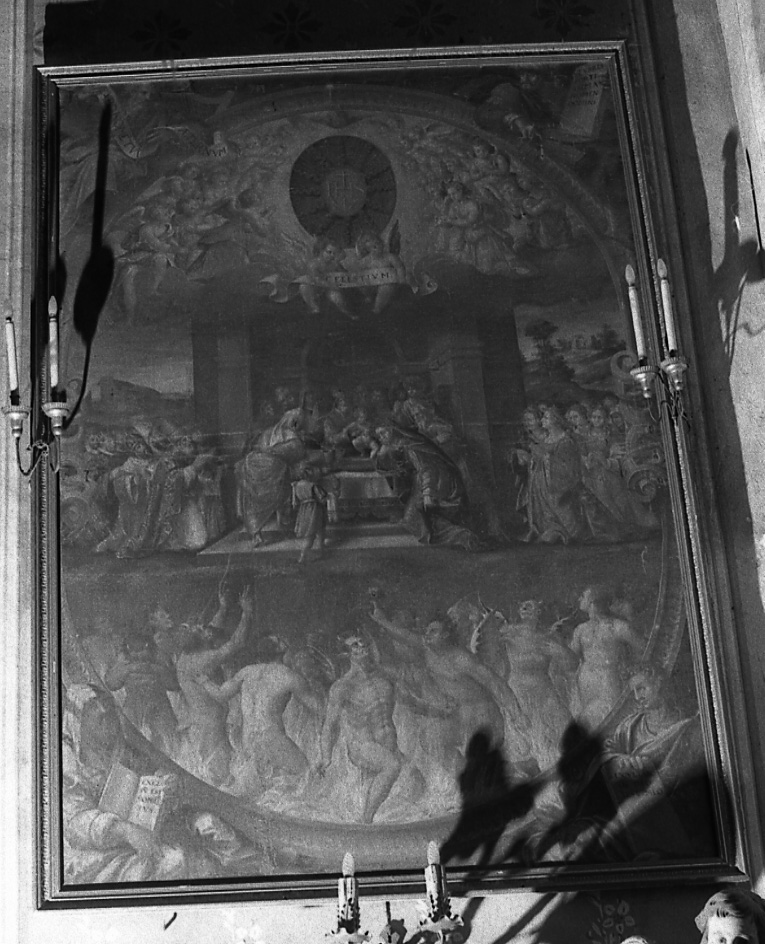 Identificato tradizionalmente come la presentazione di Gesù al tempio, il dipinto è in realtà la traduzione di una passo della lettera di S. Paolo ai Filippesi (2, 9-11) e rappresenta, all'interno di una finta cronice ovale, l'imposizione del nome di Gesù, in basso le anime dell'Inferno e in alto i cori angelici con il Nome di Gesù. Negli angoli, quattro profeti mostrano citazioni dall'Antico Testamento