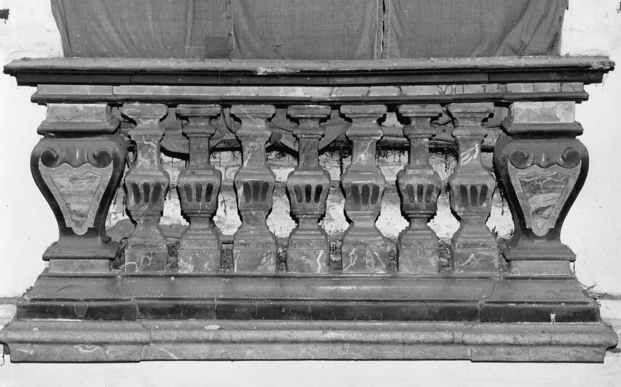 - NOTIZIE STORICO CRITICHE La balaustra e i matronei sono ricordati nell'inventario dei beni delle Confraternite del 1811 come: "...diverse pieces de marbre lesquelles doivent former la ballustre laterales a l'hotel major avec deux petites balustres laterales evalué en tital £. 75" (Archivio Comunale, 1811). Ricordano l'opera dei Pelagatta, marmorari lombardi attivi nel casalese tra la prima e la seconda metà del'700, in particolare nella chiesa dell'Assunta di Ticineto Po, dove eseguirono nel 1735 l'altare maggiore e la balaustra; ritroviamo qui forme e decorazioni molto simili a quelle di Livorno, oltre alle cimase in marmo nero con striscia gialla e i pilastrini in nero e giallo (BARBERO A., MAZZA G., Per una famiglia di marmorari lombardi a Casale: i Pelagatta, in Studi Piemontesi, Torino 1979, pag. 113). La datazione è riferibile alla metà del XVIII secolo, come l'altare maggiore della stessa chiesa (v. sch. Ingrao 1979)