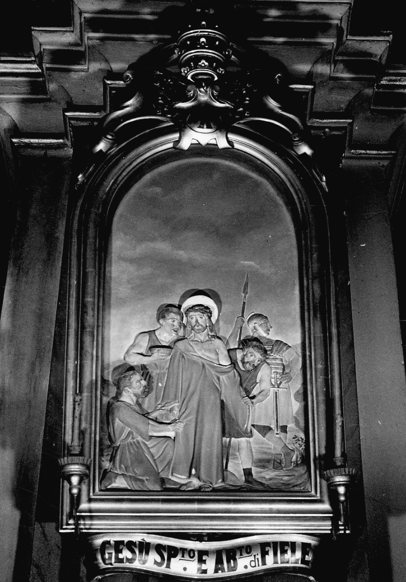- NOTIZIE STORICO CRITICHE La Via Crucis fu acquistato dal parrocco Sebastiano Fissone, dopo che nell'Inventario del 1892 aveva fatto roilevare la mancanza. Fu provvista dalla ditta Minoia di Mondovì nel 1897. Trattasi di tradizinale rifacimento della solita iconografia, l'esecuzione pare però molto curata e i colori molto vivaci, tali da accontentare uno spiccato gusto popolare. Le varie stazioni sono state "personalizzate" con le insegne di San Pietro