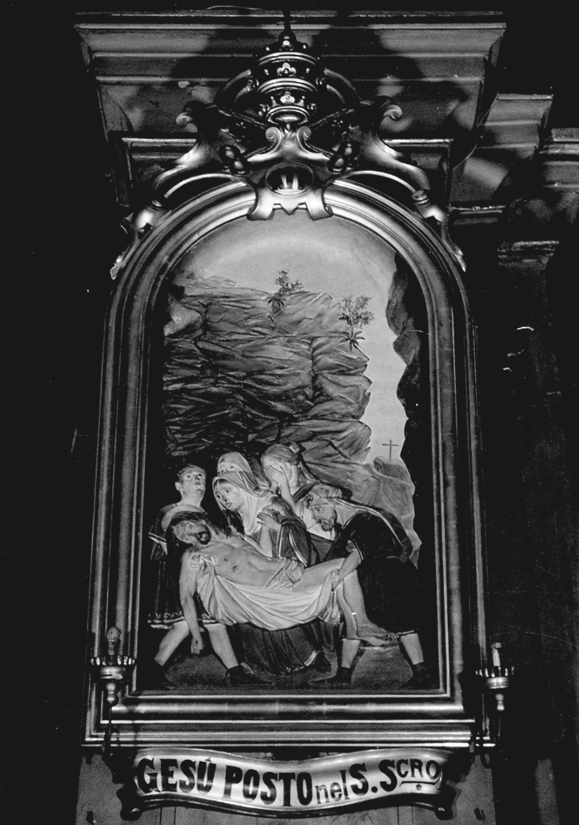 Al centrpo è il gruppo che sta trasportando il corpo di Cristo adagiato su un drappo. Alle spalle sono alcuni monto ingentiliti da piante ed arbusti. Insecondo piano, a sinistra, si vede la croce