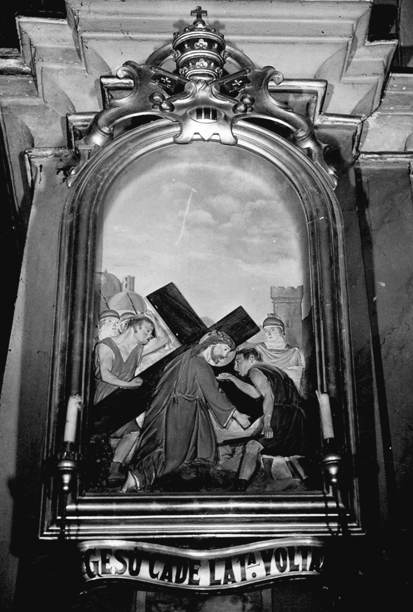 - ISCRIZIONI sul recto/ in basso/ entro cartiglio - GESU' CADE LA 1.a VOLTA - lettere capitali - a pennello -
