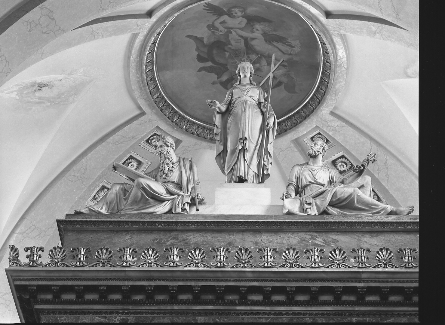 AL figura, al centro, sulla sommità, rappresenta la Religione, raffigurata con i consueti simboli: la croce e il capo raggiato