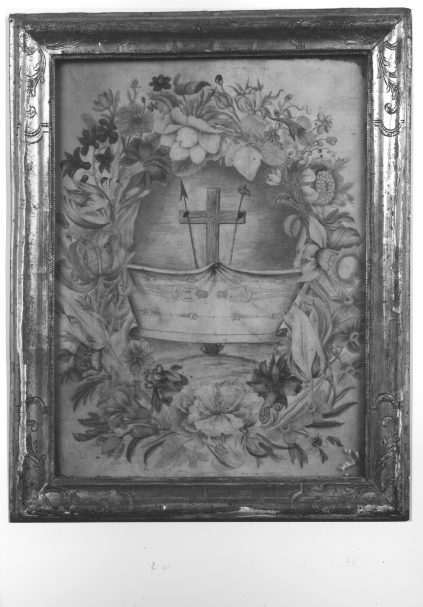 - ISCRIZIONI cornice, lato destro, in basso - 26 su etichetta rettangolare in materiale plastico rosso - numeri arabi - a penna -