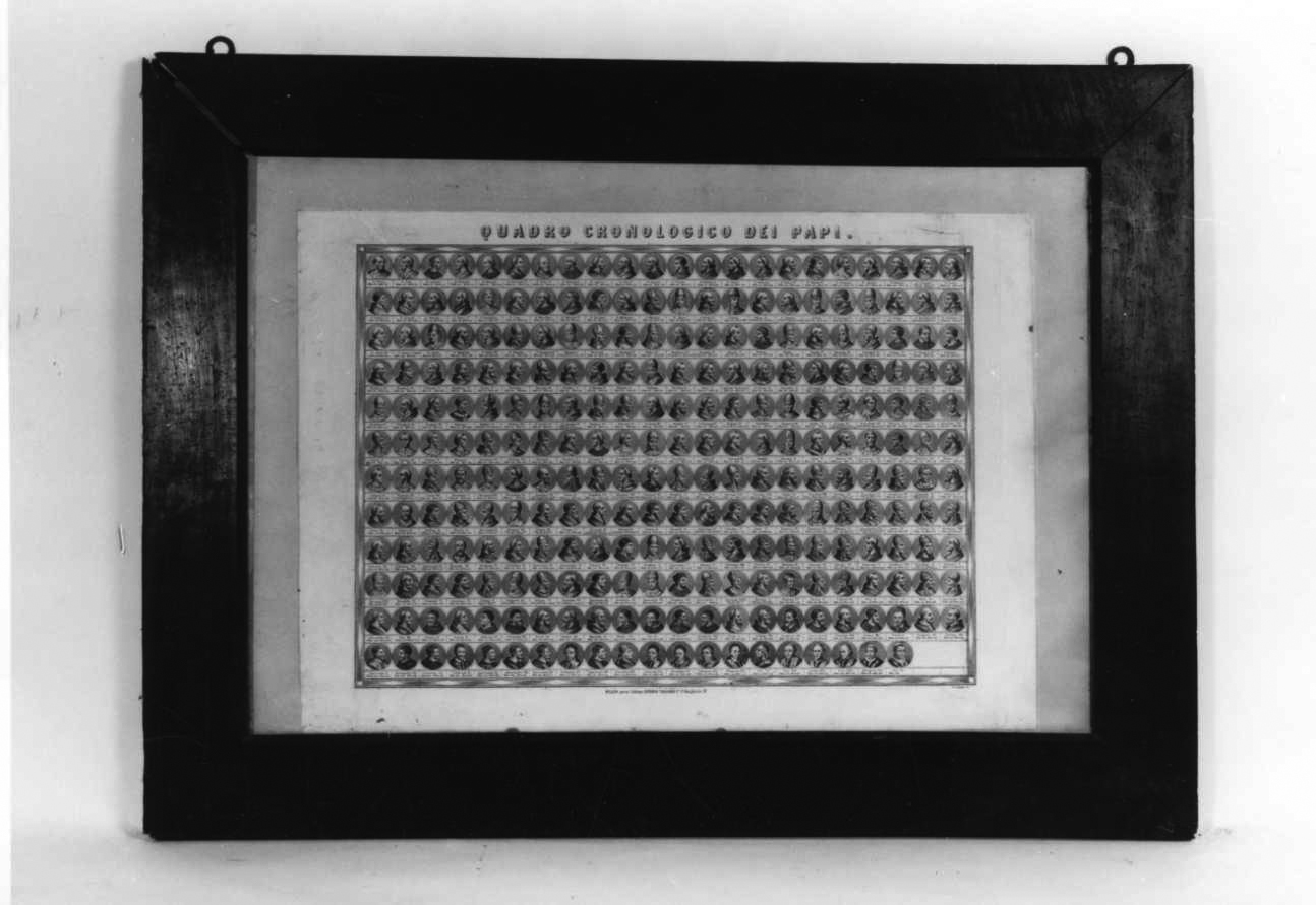 Cornice liscia nera che contiene una stampa con i ritratti dei papi a partire da San Pietro