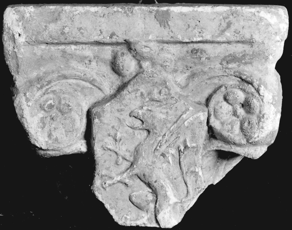 Capitello con girali e stemma con grifone rampante coronato