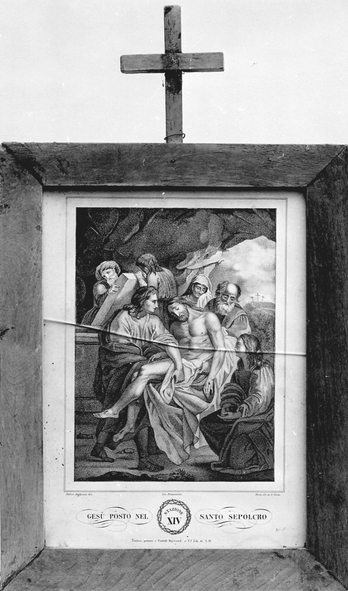 - ISCRIZIONI in basso - STAZIONE XIV / GESU' POSTO NEL / SANTO SEPOLCRO - corsivo -