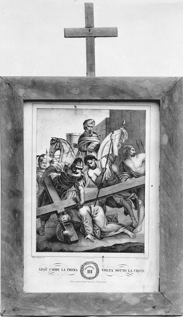 - ISCRIZIONI in basso - STAZIONE III / GESU' CADDE LA PRIMA / VOLTA SOTTO LA CROCE - corsivo -