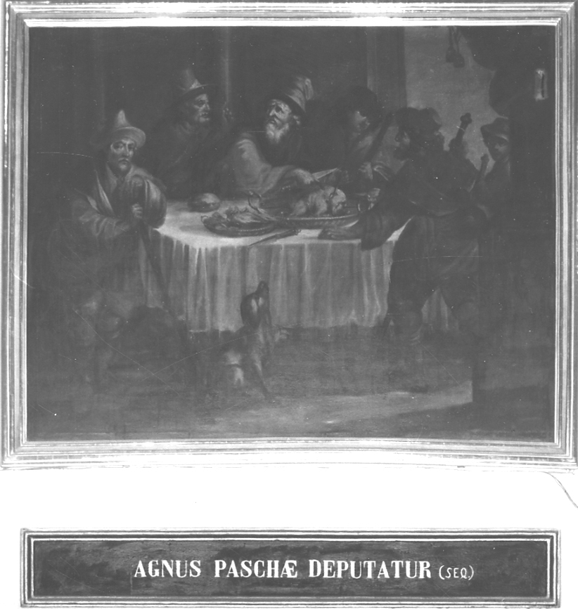- ISCRIZIONI sotto il dipinto - AGNUS PASCHAE DEPUTETUR (SEQ) - lettere capitali -