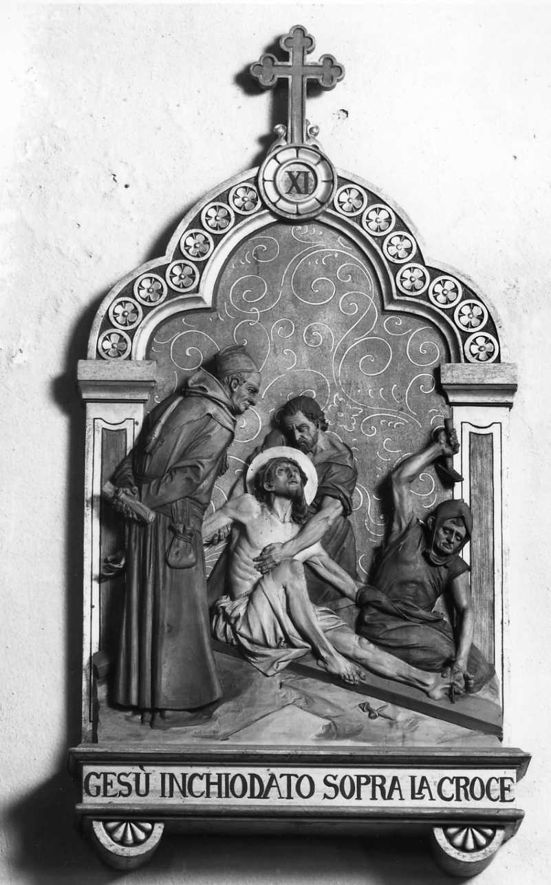 Raffigura Gesù Cristo incoronato di spine che viene inchiodato alla croce da due soldati. Alla scena assiste una figura maschile vestita elegantemente, collocata sulla sinistra