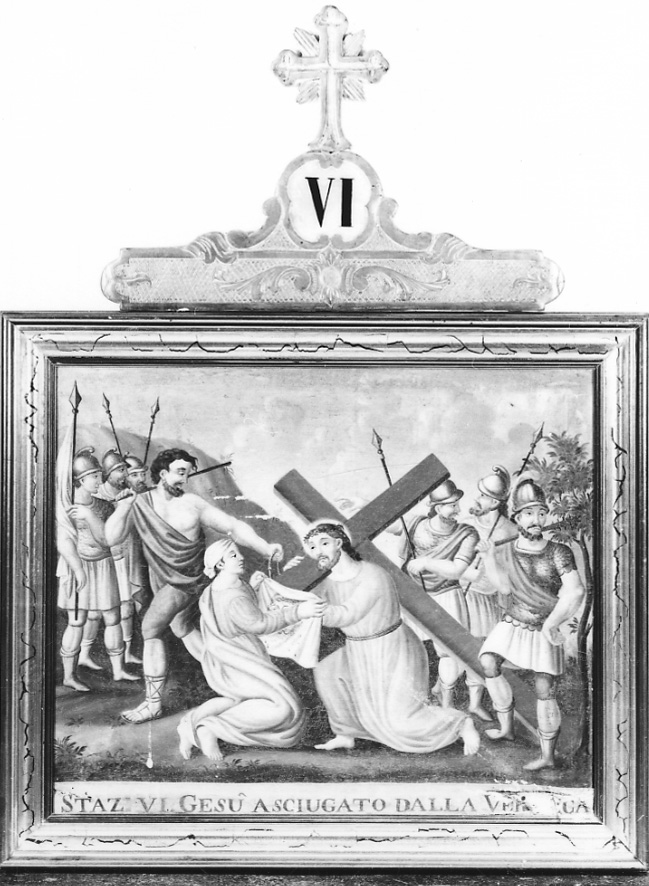 - ISCRIZIONI in basso - STAZ. VI GESU ASCIUGATO DALLA VER (...) CA - lettere capitali - a pennello - latino