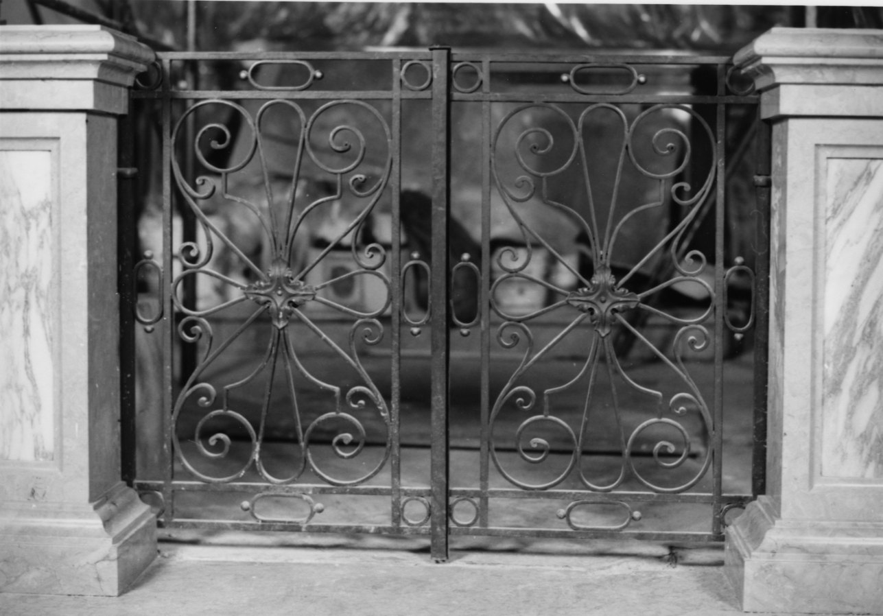 Cancello di balaustrata con motivo centrale a girali con rosetta; ovoli e cerchi nella fascia perimetrale