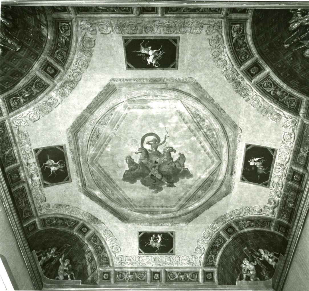 Entro le nicchie angolari, coppia di putti alati regge un candelabro