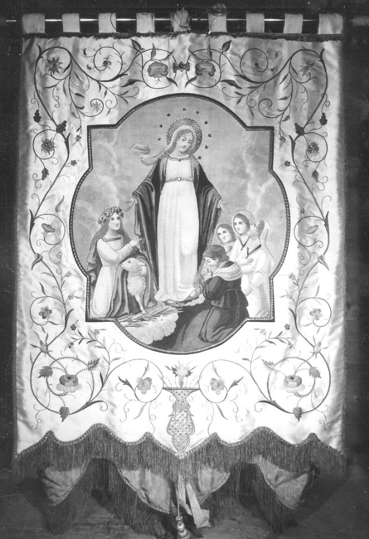 Si tratta dello stendardo della Pia Unione delle Figlie di Maria e di Sant'Agnese. Sul recto, a sfondo azzurro, sono rappresentate Sant'Agnese e la Madonna Immacolata, sul verso (a sfondo avorio) è raffigurato il monogramma mariano. Il ricamo è in oro e sete policrome