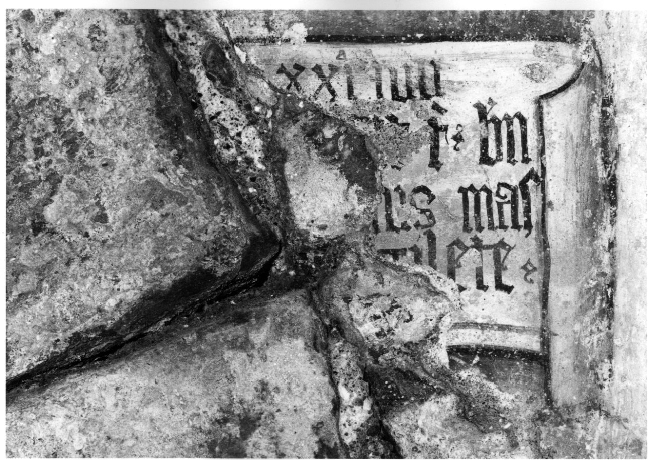 - ISCRIZIONI pilastro destro dell'arco - XXI IVV/ US MAS/ LETE - caratteri gotici -