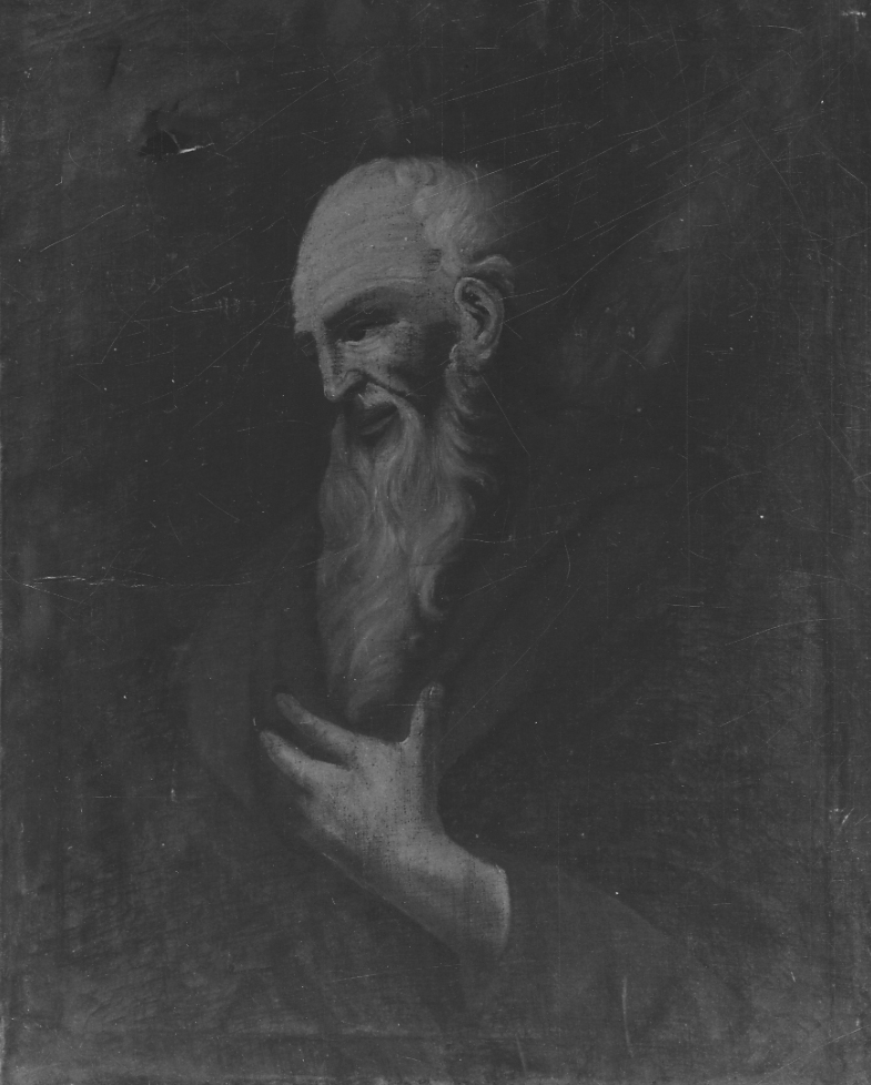 Dipinto privo di cornice. Santo, forse Sant'Andrea, a mezzo busto volto a sinistra, alle spalle una croce (?)