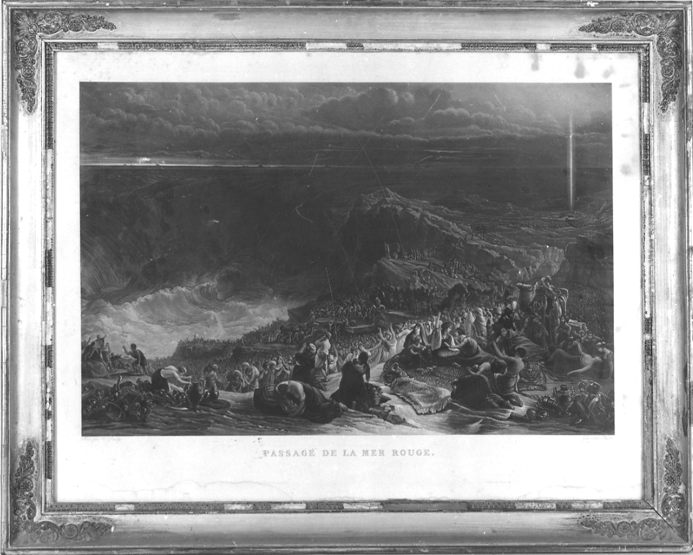 Soggetti sacri. Personaggi: Mosé. Figure: figure femminili; figure maschili. Abbigliamento. Simboli: (Dio) luce. Fenomeni divini: divisione delle acque. Paesaggi