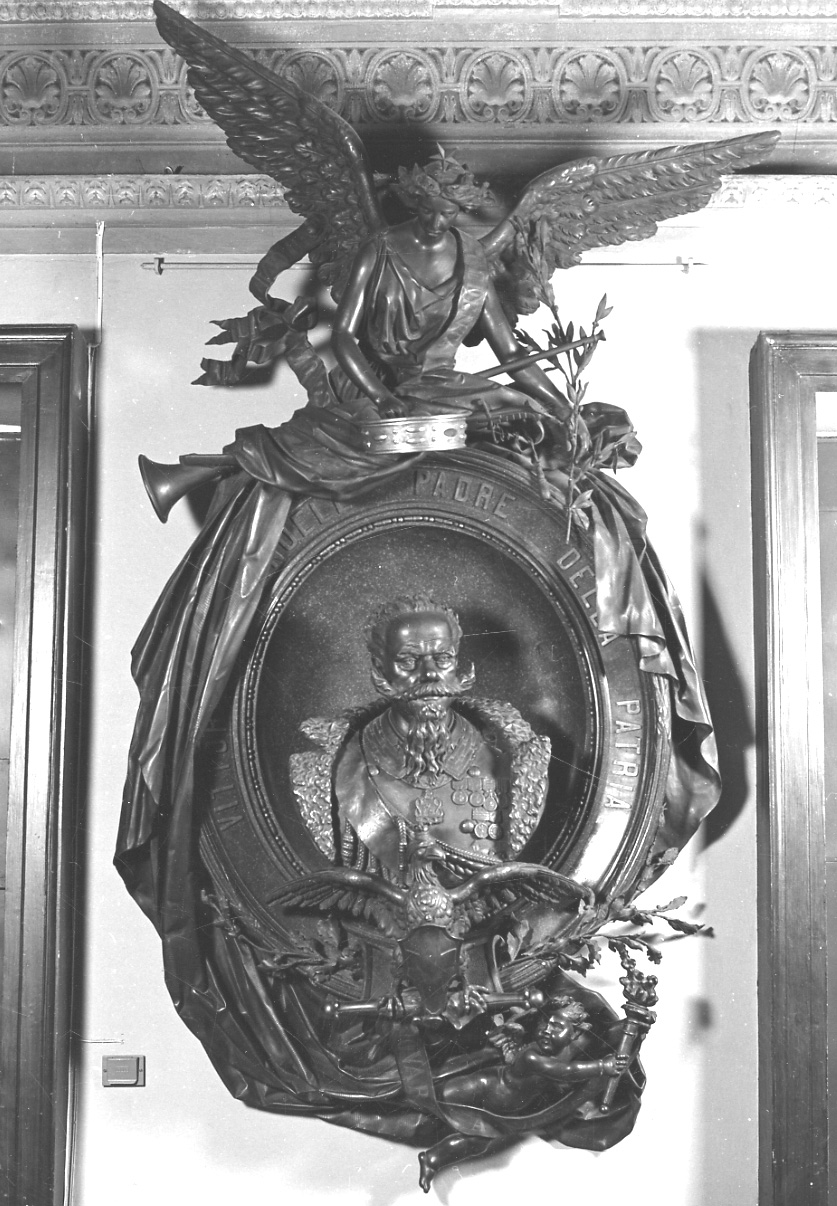 Soggetti profani. Ritratti. Personaggi: Re Vittorio Emanuele II. Abbigliamento. Allegorie-simboli: Fama. Oggetti: corona. Figure: angioletto. Simboli: aquila