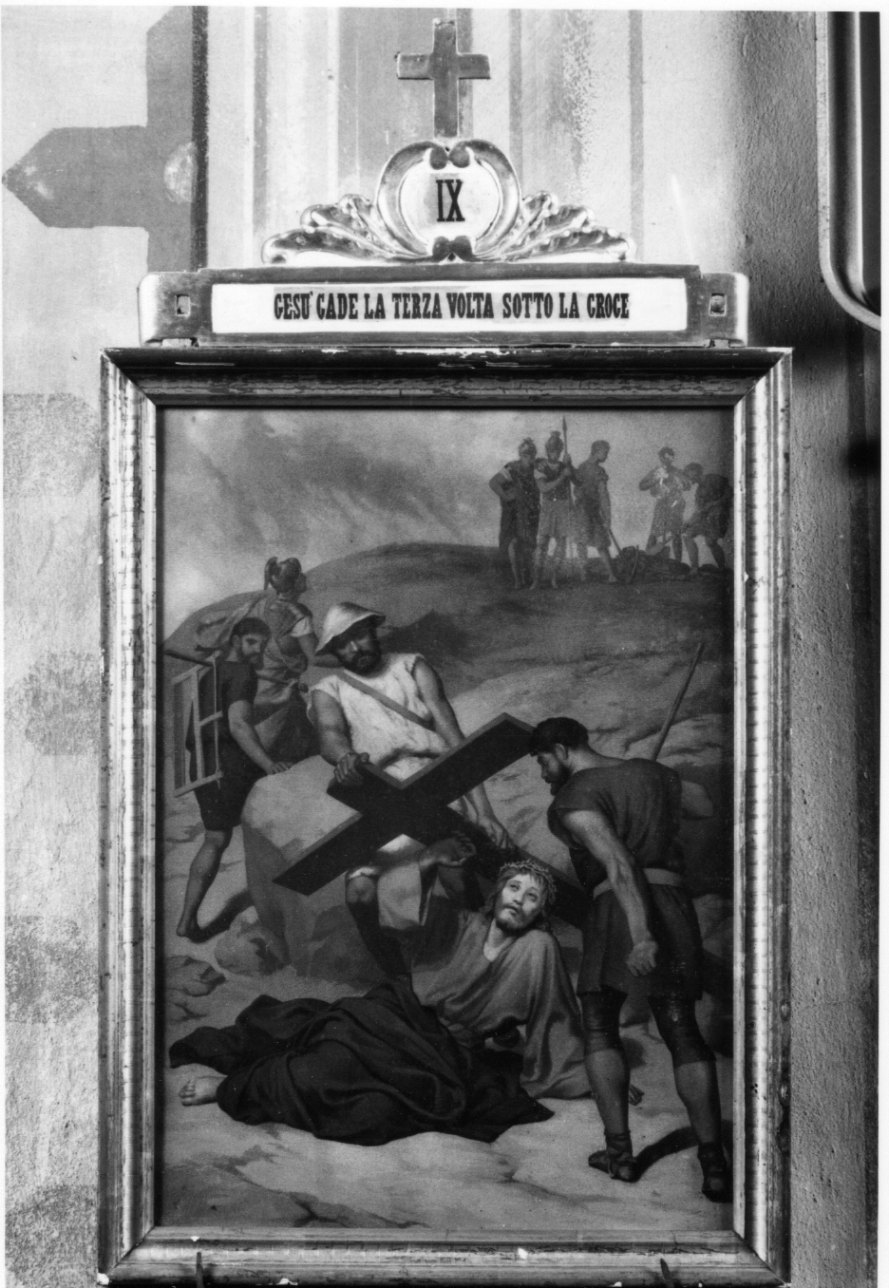 - ISCRIZIONI cornice - GESU' CADE LA TERZA VOLTA SOTTO LA CROCE - lettere capitali - a pennello -