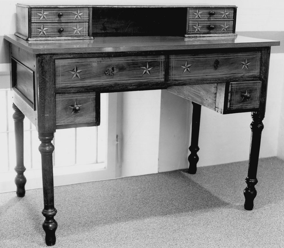 - NOTIZIE STORICO CRITICHE Lo scrittoio è il risultato di un assemblaggio di mobili diversi. Il piano superiore è in laminato plastico