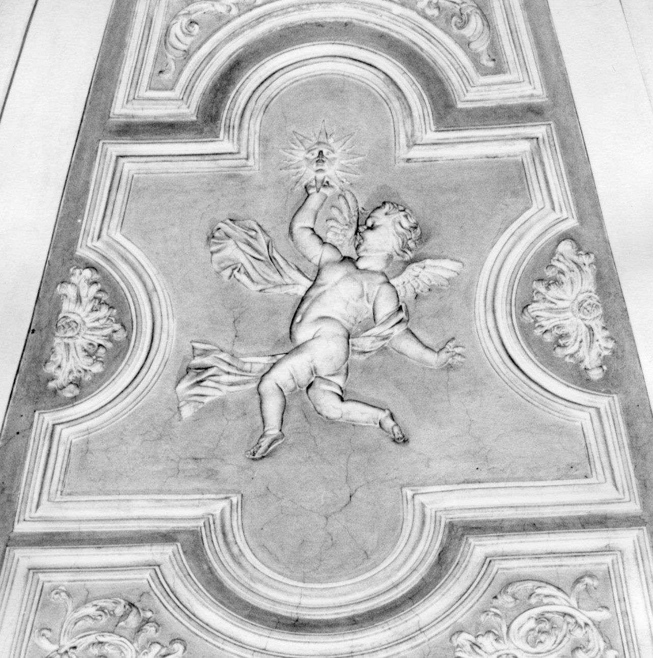 Angelo che regge nella mano sinistra un sole