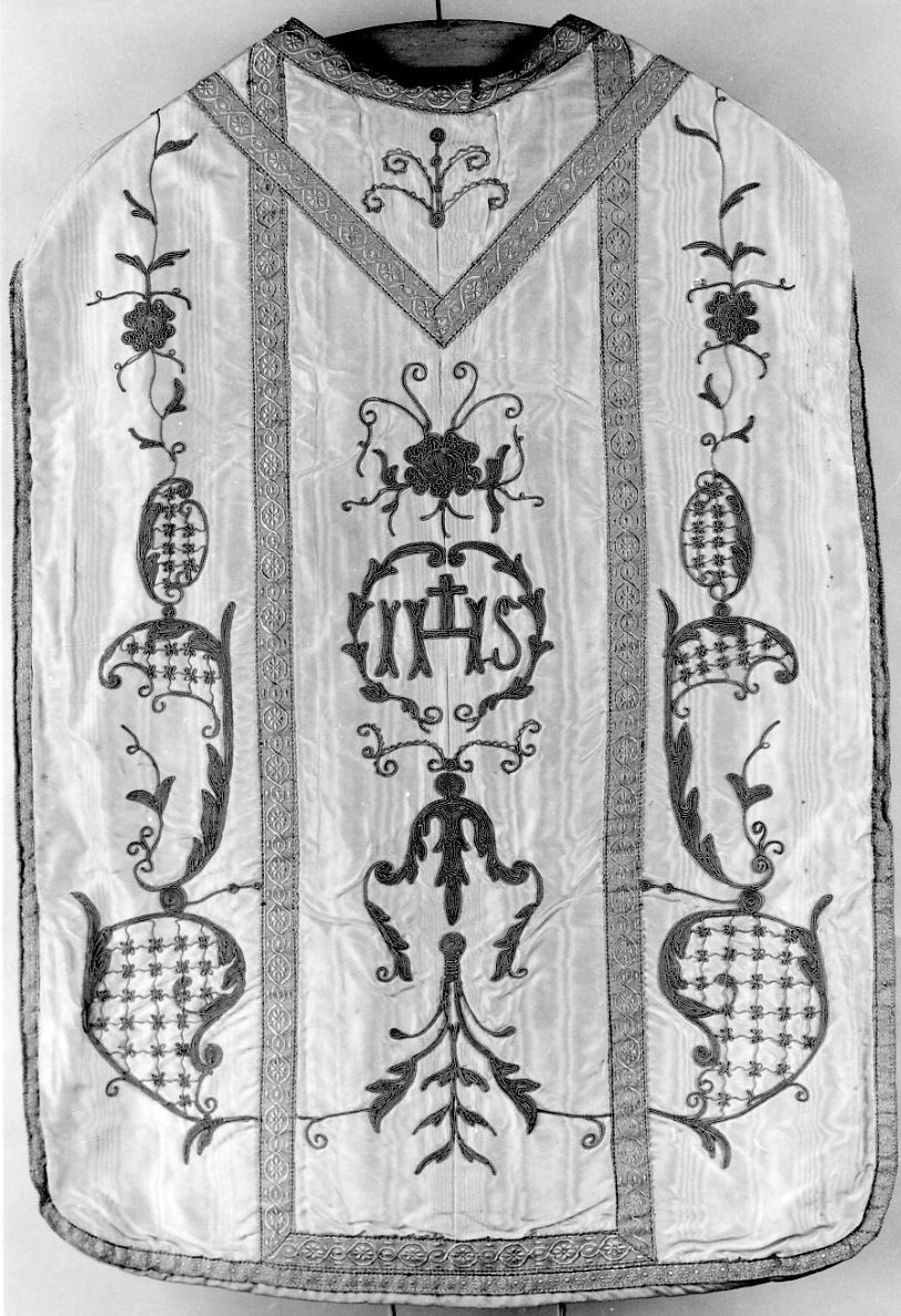 - ISCRIZIONI al fondo della pianeta - IHS - lettere capitali - a ricamo - latino