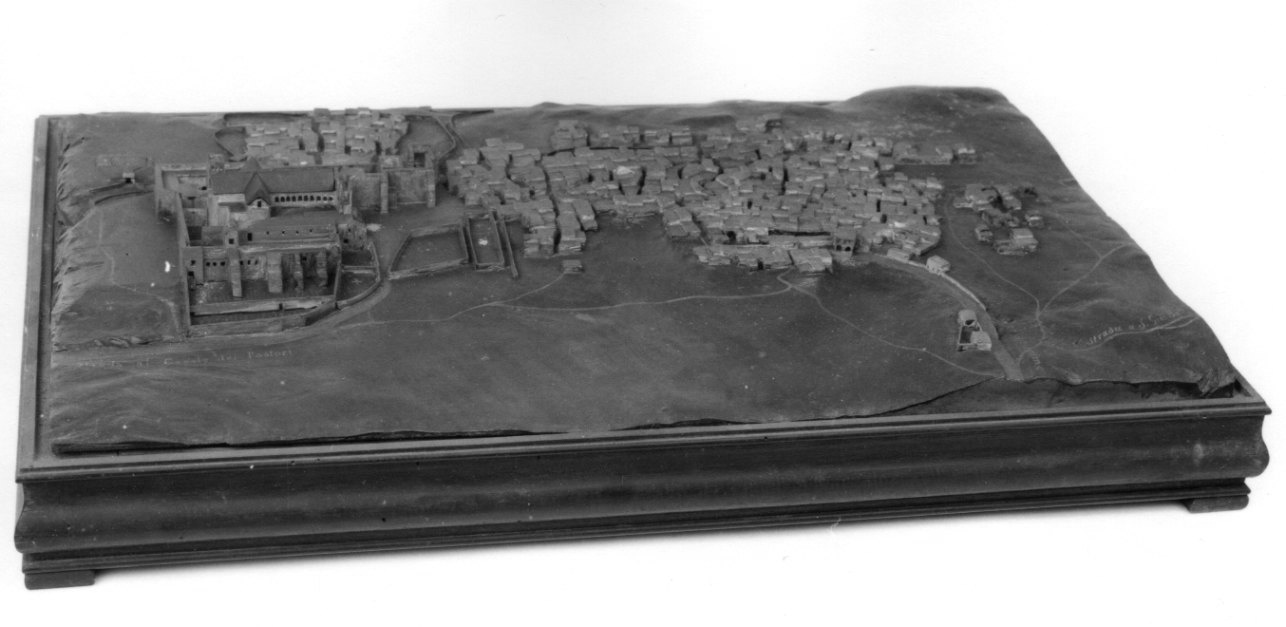 Modellino riproducente la veduta di Betlemme; in alzato, sul piano sinistro, compare il tempio dedicato a Maria Vergine. Sono segnalate anche le strade di accesso. Base lignea e teca in vetro