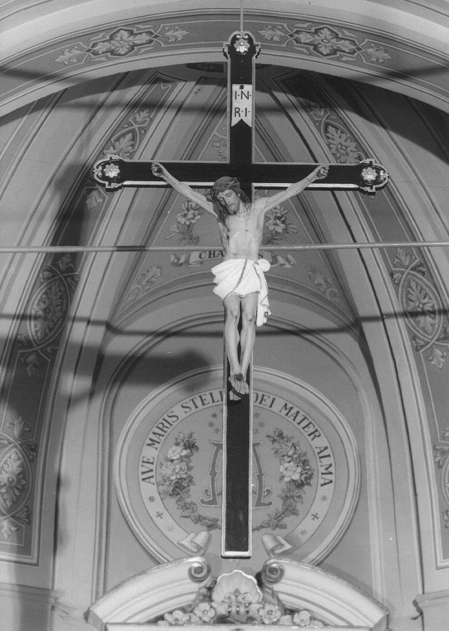 Croce lignea. Crocifisso. Titolo applicato e dipinto